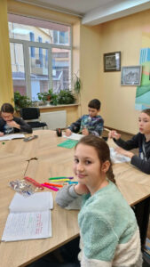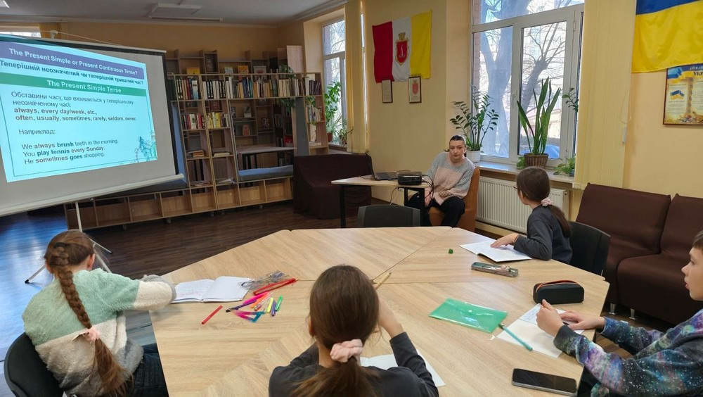У бібліотеці №20 відбулося чергове заняття курсу «English for kids» під керівництвом волонтерки Марії Шаркової. Юні англомовці працювали над темою Present Simple & Present Continuous — вчилися розрізняти ці два часи, правильно їх утворювати та впевнено використовувати у мовленні.