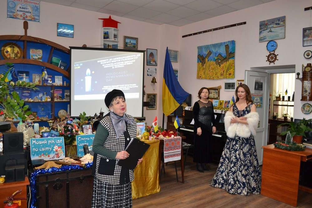 24 січня в бібліотеці №21 пройшов концерт до Міжнародного дня пам’яті жертв Голокосту за участю артистів Одеської обласної філармонії імені Д. Ойстраха. Завідувачка бібліотекою Каріна Апарінова відкрила вечір, продекламувала вірш і запропонувала хвилину мовчання на вшанування загиблих.