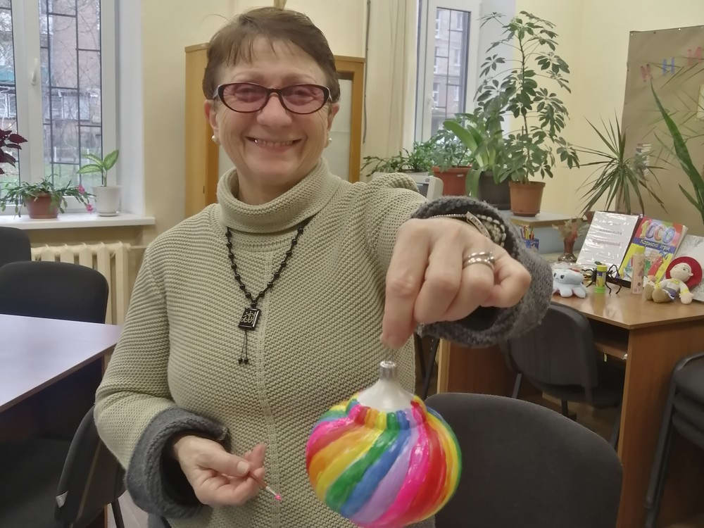 10 грудня у філії №35 відбувся майстер-клас «Розпис ялинкової іграшки «Дзига» для студентів Університету третього віку Київського терцентру та читачів закладу. Заняття провела майстриня художнього розпису Галина Харіна.