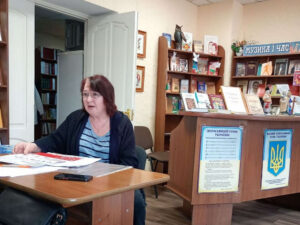 Бібліотекарка Світлана Альохіна познайомила аудиторію з дуже не простою темою «Суїцидальні думки, психічні розлади та залежності». Ця тема також сьогодні важлива і привертає увагу суспільства. Світлана розповіла про ознаки суїцидальної поведінки, про що варти знати, щоб вчасно допомогти своїм близьким, куди звертатися у разі, якщо людина має суїцидальні думки та наміри.