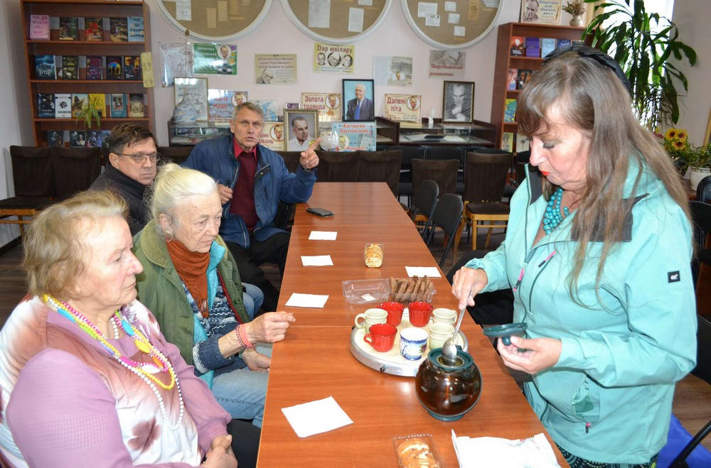 Завідувачка бібліотеки Каріна Апарінова презентувала для дегустації українські фіточаї: трав’яний «Ранковий» з плодами шипшини з Полтавщини та монастирський мгарський «Козацький» за старовинними рецептами Мгарського чоловічого монастиря. Вона пояснила, що фіточай – це спеціально підібраний трав’яний збір із м’якою оздоровчою дією, який очищує організм, зміцнює його, допомагає справлятися зі стресами та сезонними захворюваннями. Фіточаї стали альтернативою синтетичним препаратам і щоденним ритуалом турботи про здоров’я.
