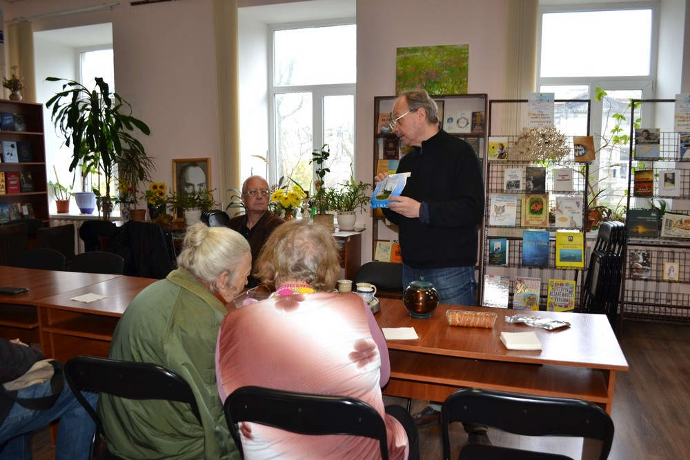 Бібліотекар Олександр Апарінов розповів про традиційні японські чайні церемонії, поділився спогадами про відвідини міст Японії та продемонстрував учбові й документальні фільми про історичну чайну церемонію в країні Висхідного сонця.