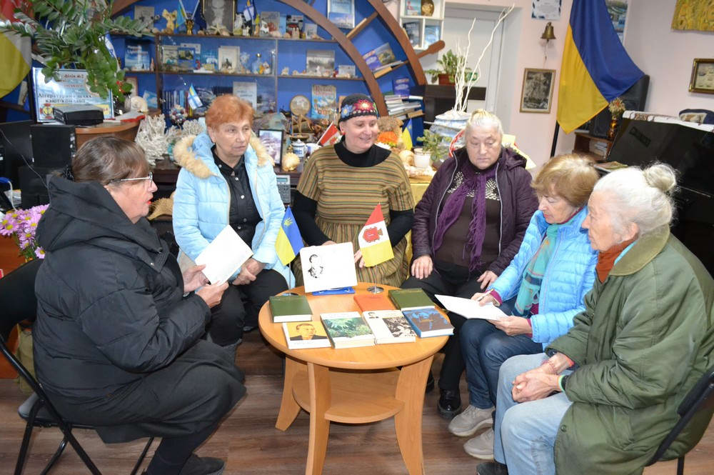Завідувачка бібліотеки Каріна Апарінова ознайомила присутніх із творчістю Андрія Самойловича, підкресливши його постійний зв’язок із народним життям та історією. Вона зазначила, що пісенність – одна з найдорогоцінніших прикмет усієї поезії Малишка.
