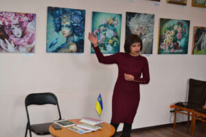 Завідувачка Каріна Апарінова розповіла про творчу і журналістську діяльність Ірини Денисової та познайомила з присутніх з багаторічною співпрацею поетки з бібліотекою №21.
