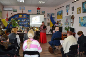 Каріна Апарінова розповіла про традицію проведення конкурсів символу року в бібліотеці №21, які тривають багато років поспіль. Бібліотекар Олександр Апарінов познайомив гостей із символізмом коня в українській та китайській культурах.