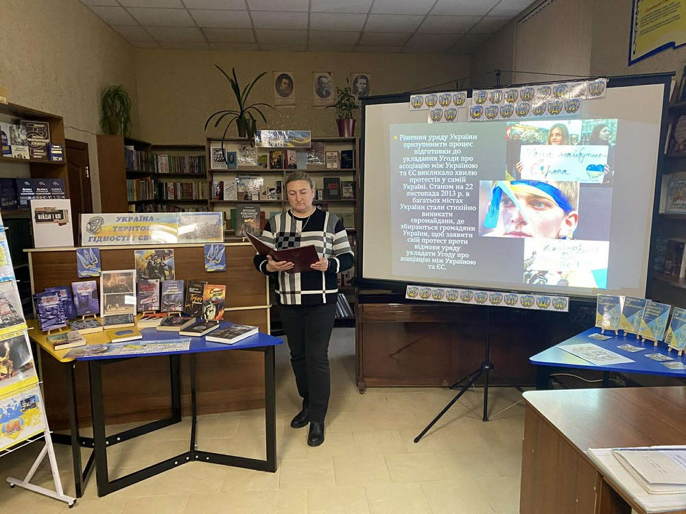 Під час заходу бібліотекарі показали презентацію та відеоролики, що висвітлювали події 21 листопада, початок Помаранчевої революції 2004 року та Революції Гідності 2013 року. Матеріали детально відтворювали соціально-політичну ситуацію того часу.