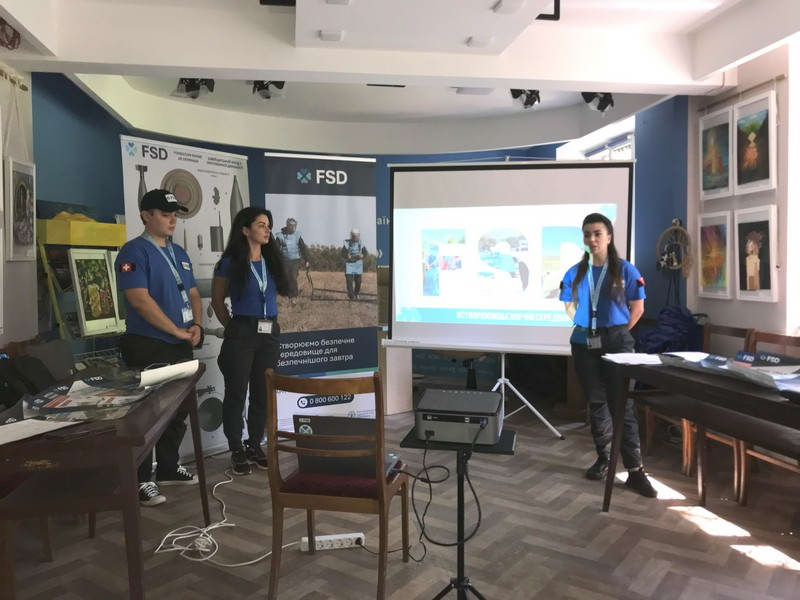 12 серпня учасники клубу «Філософія безпеки життєдіяльності» при бібліотеці №2 побували у ОРО НСЖУ. Працівники FSD Ukraine «Швейцарський фонд протимінної діяльності» провели там заняття за темою «Правила поведінки з вибухонебезпечними залишками війни та мінами».