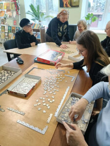 Зустріч розпочалася зі збирання пазлів із зображенням коней. Ця вправа допомогла зосередити увагу, знизити тривожність і стимулювала живе спілкування між присутніми. Пазли з кіньми мали символічне значення, адже кінь асоціюється з Новим роком за Східним гороскопом.