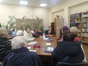 12 листопада у філії №35 відбулося заняття «Психосоціальна підтримка» для студентів Університету третього віку Київського терцентру та читачів закладу. Тема зустрічi – «Відчуття особистості, відчуття свого тіла». Учасники дізнавалися, як досягати гармонії з собою та світом через усвідомлення власних тілесних і психічних процесів.