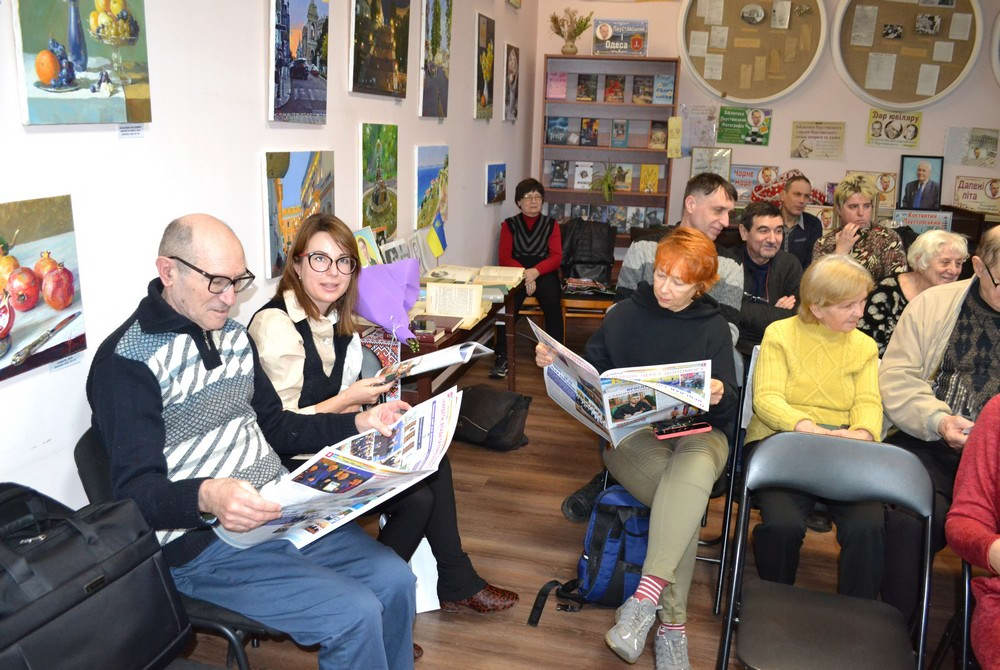 Завідувачка бібліотеки Каріна Апарінова розповіла про творчий і життєвий шлях Олега Зеленського та представила свіжий номер видання. Цього разу газета присвячена одеським спортсменам, волонтерам, науковцям і представникам бізнесу.