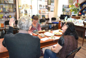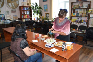 Завідувачка бібліотеки Каріна Апарінова представила збірку текстів популярних пісень українських авторів «Пісня на добро». Бібліотекар Олександр Апарінов поділився історіями про чайно-музичні традиції країн від Канади до Австралії.