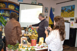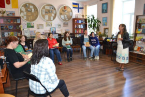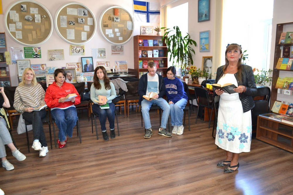 Присутні познайомились з історичними бібліотечними виданнями Михайла Грушевського і з задоволеннями почули історію бібліотеки-музею ім. К. Г. Паустовського, яку розповів працівник філії Олександр Апарінов.