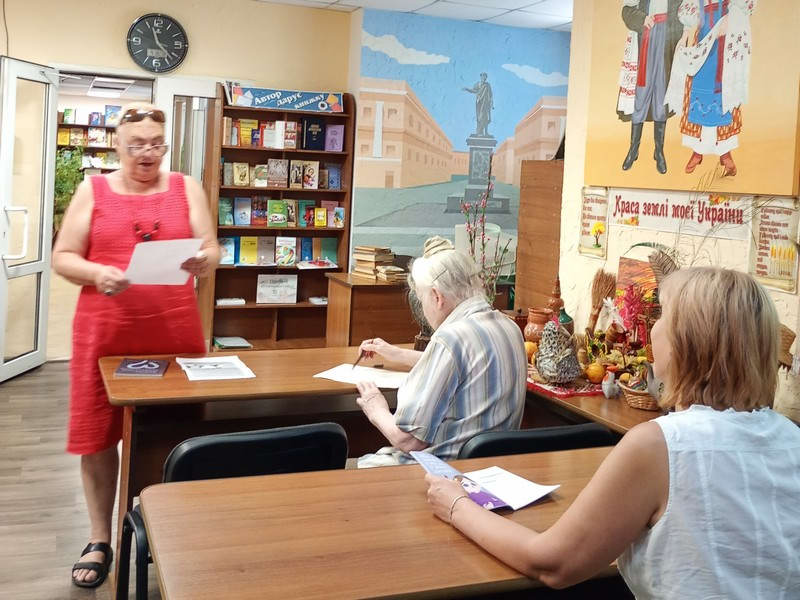 15 липня у бібліотеці № 16 пройшла бесіда у рамках програми ментального здоров’я «Ти як?». Вона мала назву «Вісім ознак того, що ти втрачаєш контакт з собою». Присутні – учасники творчої майстерні та працівники бібліотеки.
