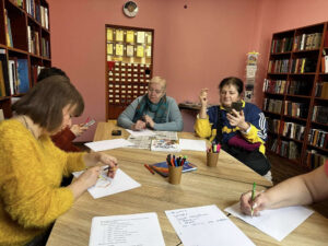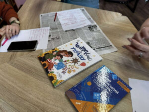 Щоб краще запам’ятати нові слова, гості разом створили казку: кожен продовжував речення, використовуючи обране сучасне слово. Присутні ділилися враженнями від заняття та дякували за цікавий формат.