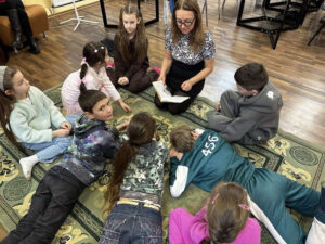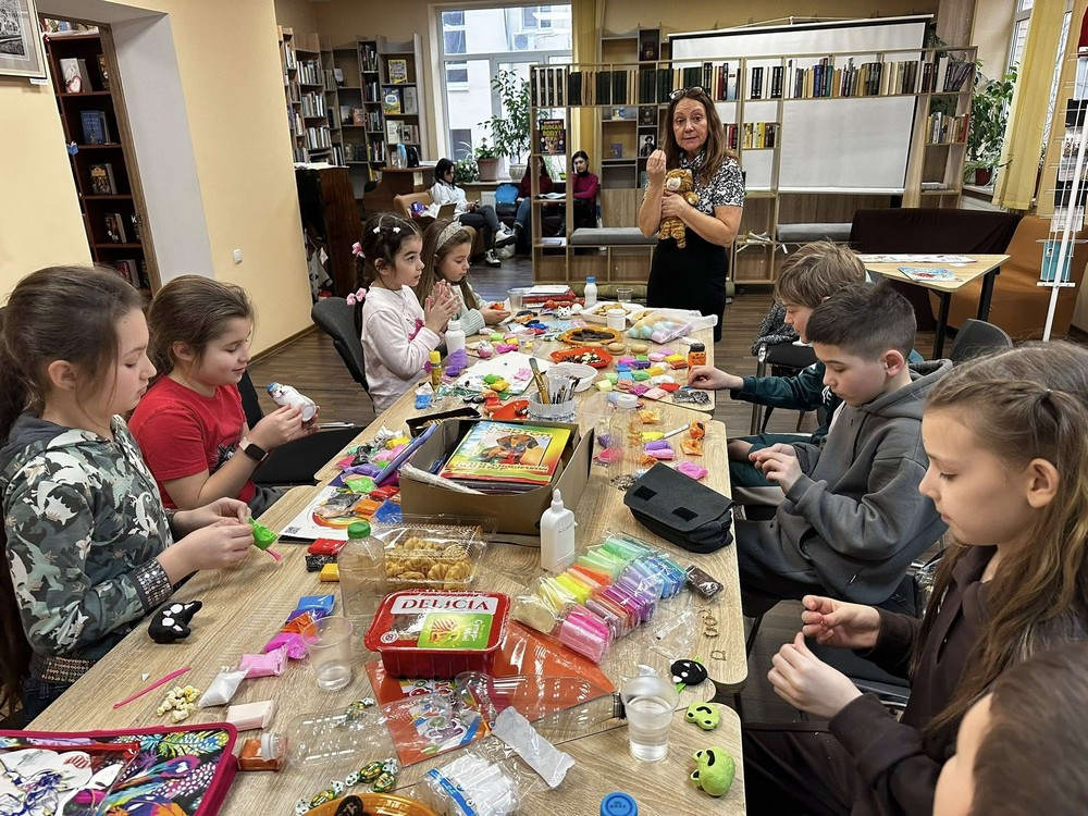 Далі — найгучніша частина: ліпили маракаси під вірші Світлани Полініної та розглядали картини з книги «Impressionist Cats». А потім настала «тиша на килимку» — легенди з книги Еліни Заржицької слухали так уважно, ніби козаки ось-ось мали зайти до читальної зали.