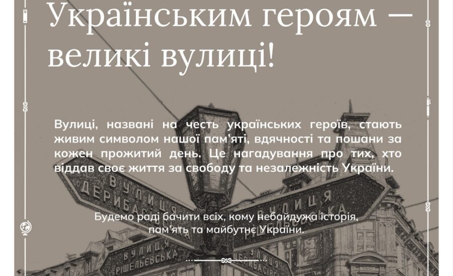 Вулиці, названі на честь українських героїв, стають живим символом нашої пам’яті, вдячності та пошани за кожен прожитий день. Це нагадування про тих, хто віддав своє життя за свободу та незалежність України. Тому запрошуємо…