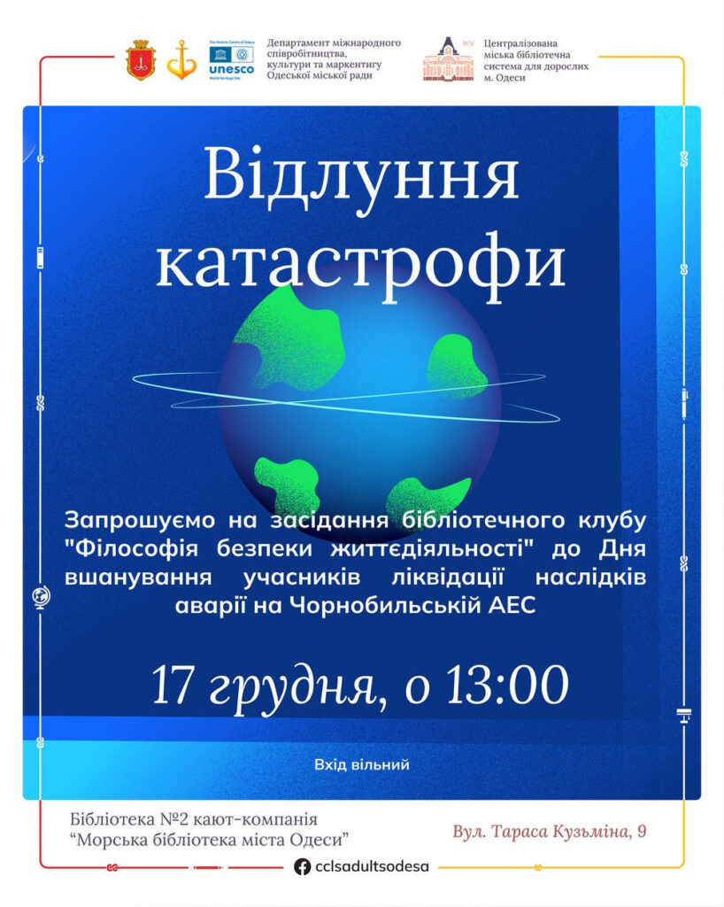 Запрошуємо на чергове засідання клубу “Філософія безпеки життєдіяльності” до Дня вшанування учасників ліквідації наслідків аварії на Чорнобильській АЕС. Тема зустрічі — «Відлуння катастрофи»: ми поговоримо про довготривалі наслідки аварії, уроки безпеки, екологічні та соціальні виклики, які досі стоять перед нами.