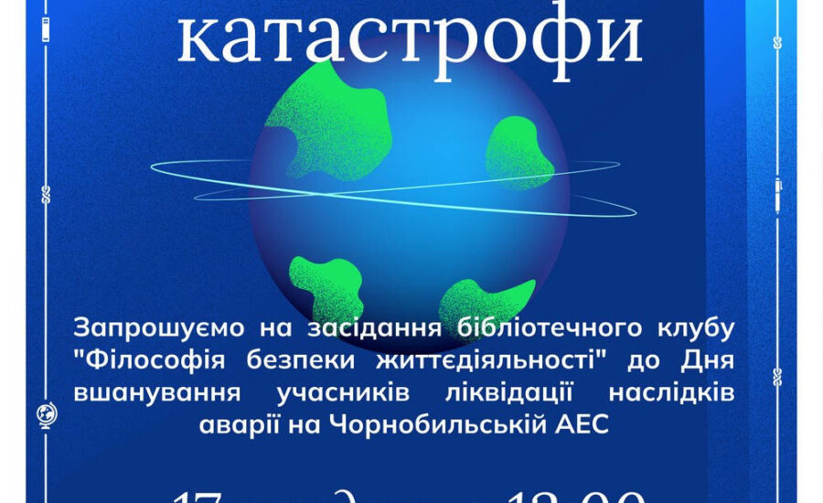📖 Опис заходу: Запрошуємо на чергове засідання клубу "Філософія безпеки життєдіяльності" до Дня вшанування учасників ліквідації наслідків аварії на Чорнобильській АЕС. Тема зустрічі — «Відлуння катастрофи»: ми поговоримо про довготривалі наслідки аварії, уроки…