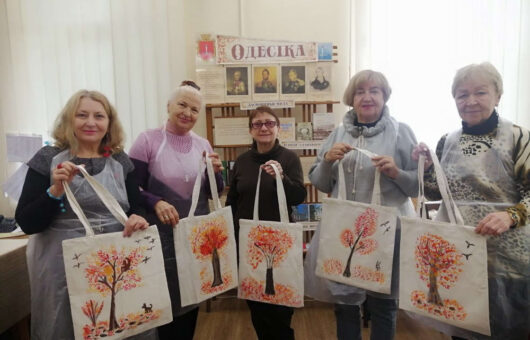 У бібліотеці №35 пенсіонери розписали власні еко-сумки