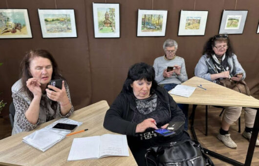 23 травня в книгозбiрнi №1 студенти Університету третього віку Приморського терцентру продовжили долати труднощі з користування застосунком