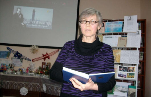 Завідуюча бібліотекою №13 Наталія Парнєва читає вiрш Лiни Костенко "Крила".
