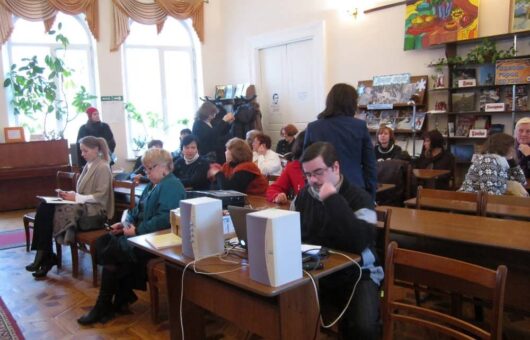 Заведующая библиотекой №16 Галина Чубина знакомит с романом Юрия Буйды "Синяя кровь". (більше…)