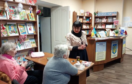 Співробітниця бібліотеки імені Багрицького Людмила Налева читає вірш "Заповіт" Тараса Шевченка.