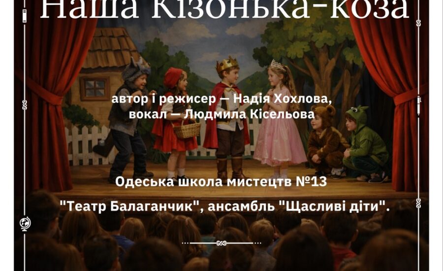 📖 Опис заходу:Одеська школа мистецтв №13, "Театр Балаганчик", ансамбль" Щасливі діти "Фольклорна вистава "Наша Кізонька-коза" за мотивами українських народних обрядів зимового циклу. Автор і режисер - Надія Хохлова, вокал - Людмила Кісельова 📝…